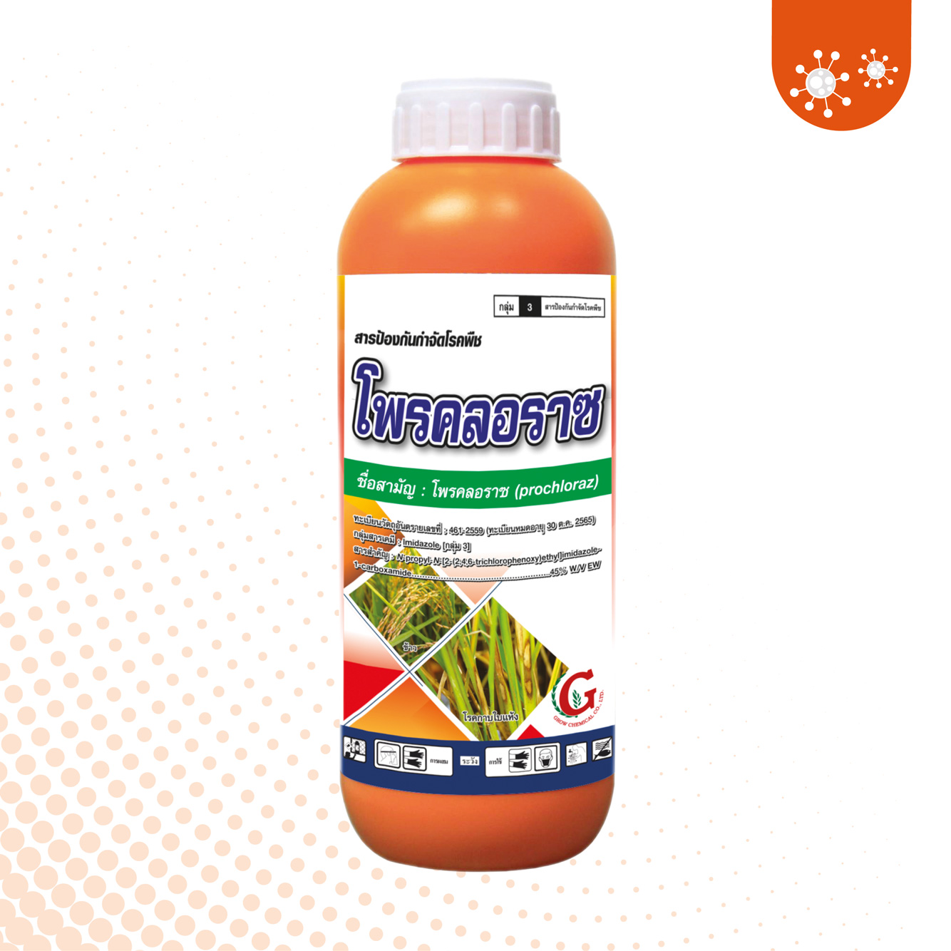 Prochloraz 45% EW, protects and eradicate anthracnose – anthracnose in peppers, rice sheath blight